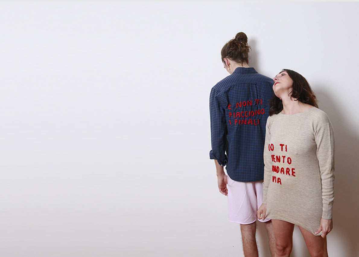 un progetto di recupero di abbigliamento usato, ricamato a mano, in omaggio alla musica italiana. Ma anche su commissione con parole tue